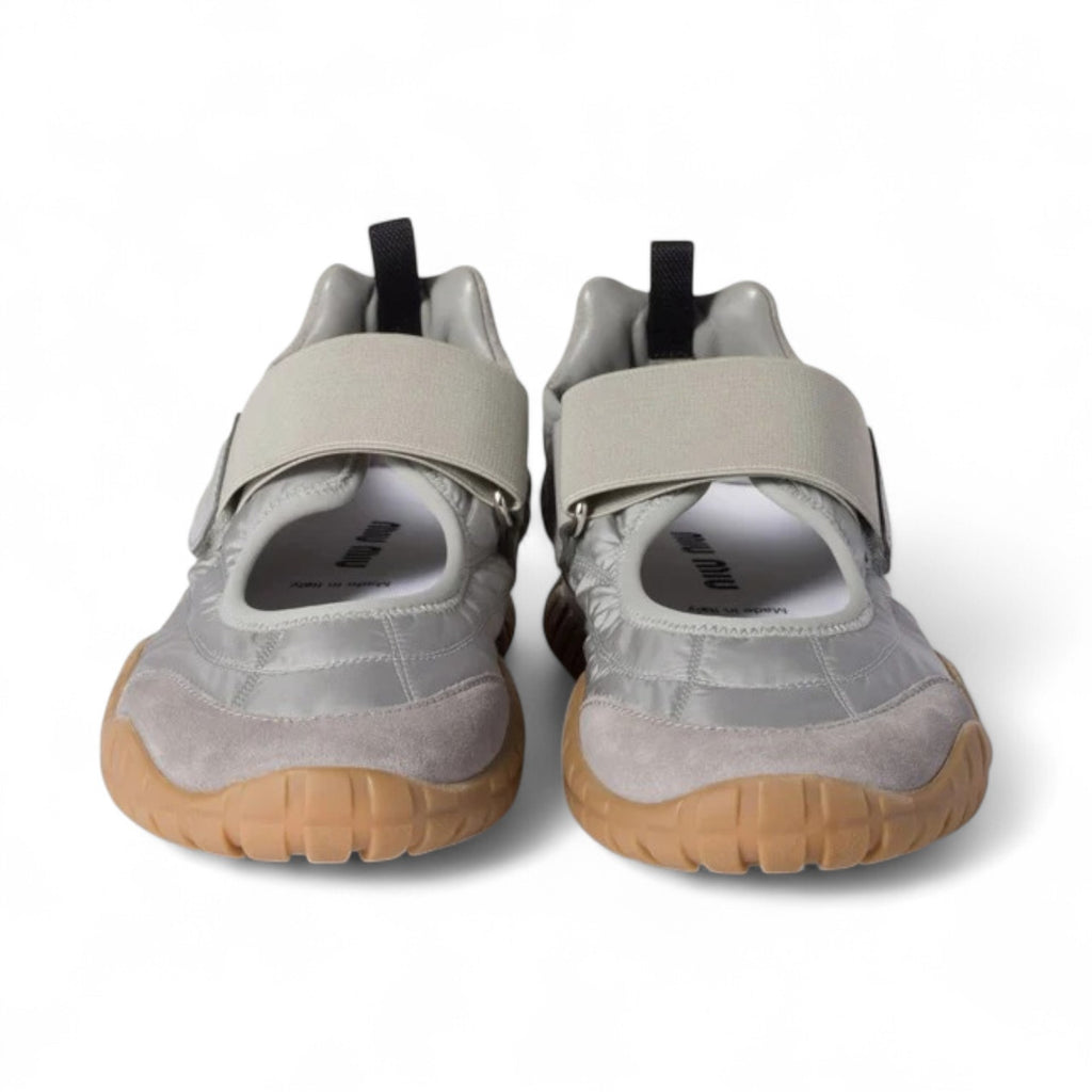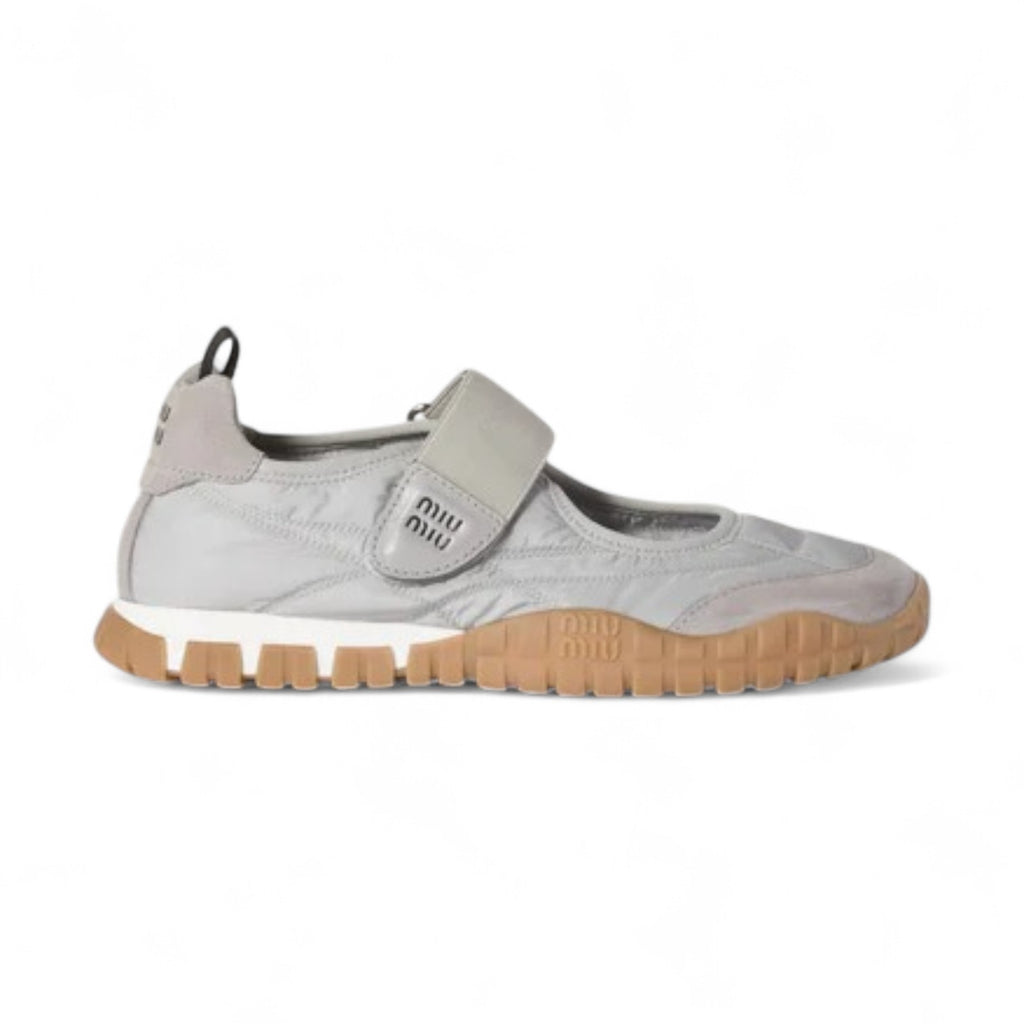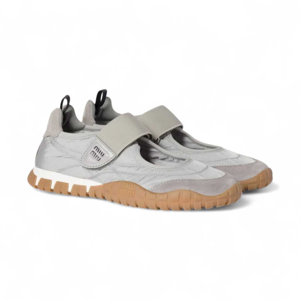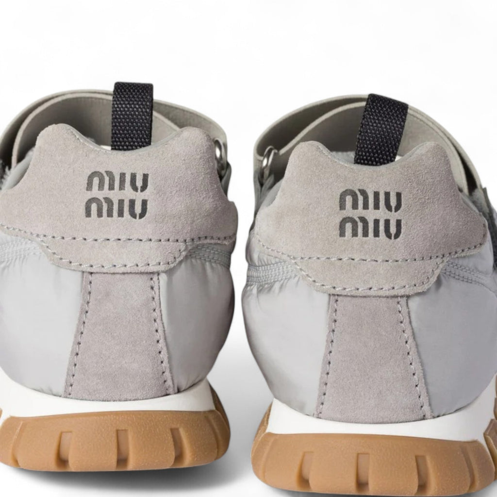 MIU MIU WOMEN CLOUDY GREY TECHNICAL FABRIC ADN SUEDE BALLERINAS – e-Outlet