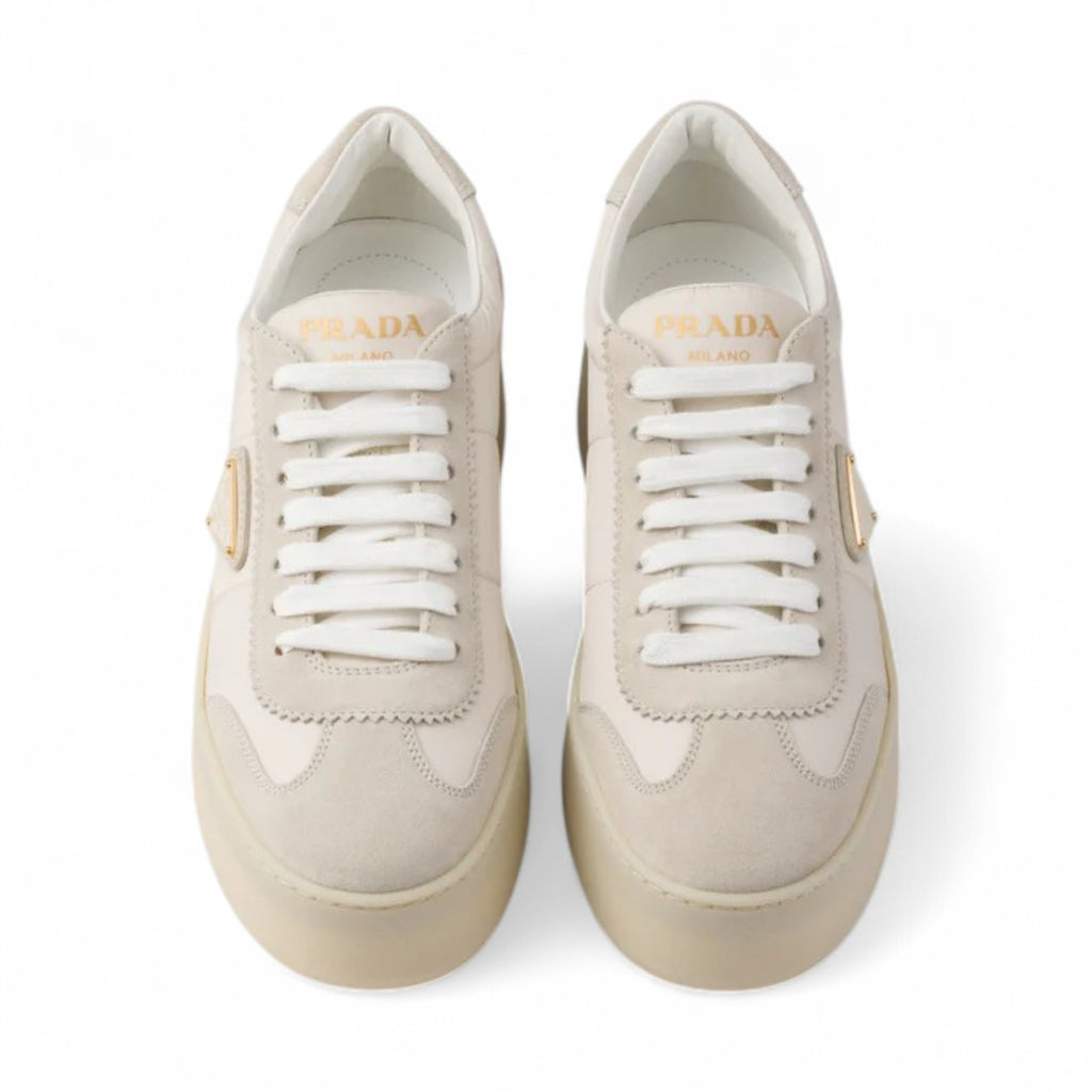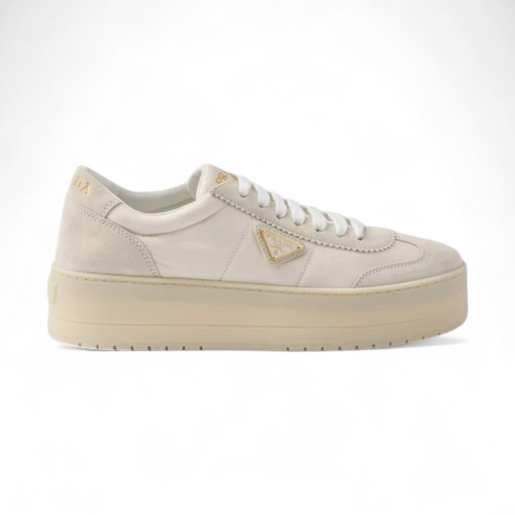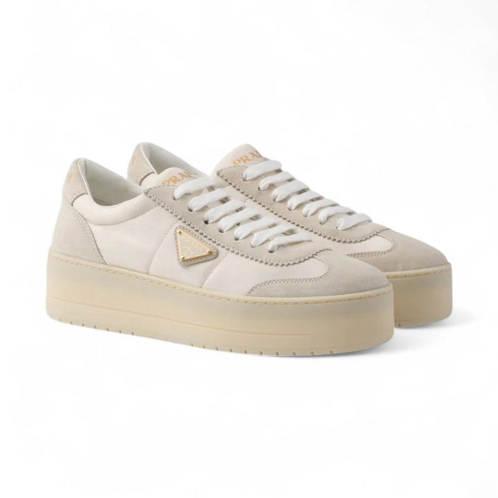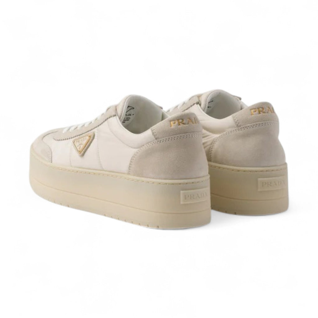 PRADA IVORY DOWNTOWN BOLD NYLON AND SUEDE WOMEN BEIGE SNEAKERS – e-Outlet