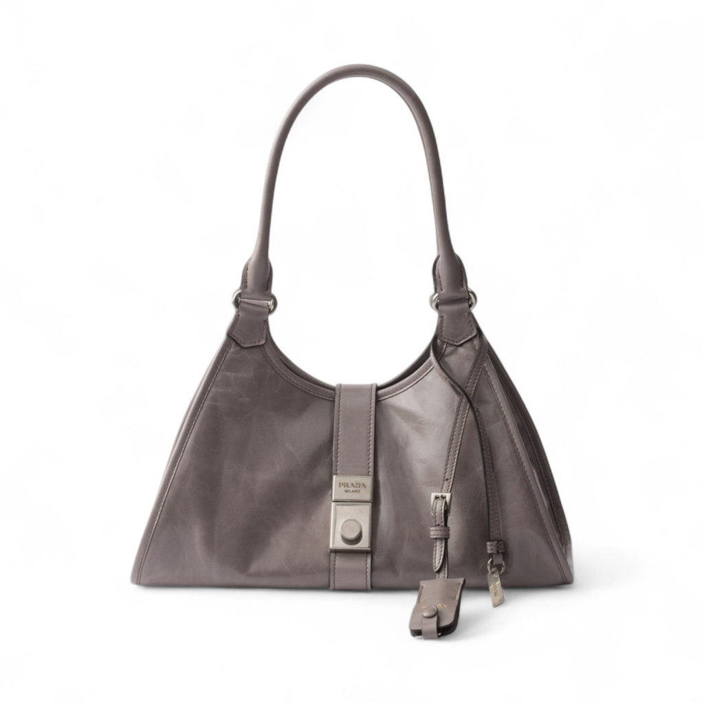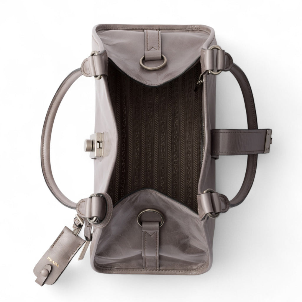 PRADA MEDIUM LEATHER GREY TOTE BAG