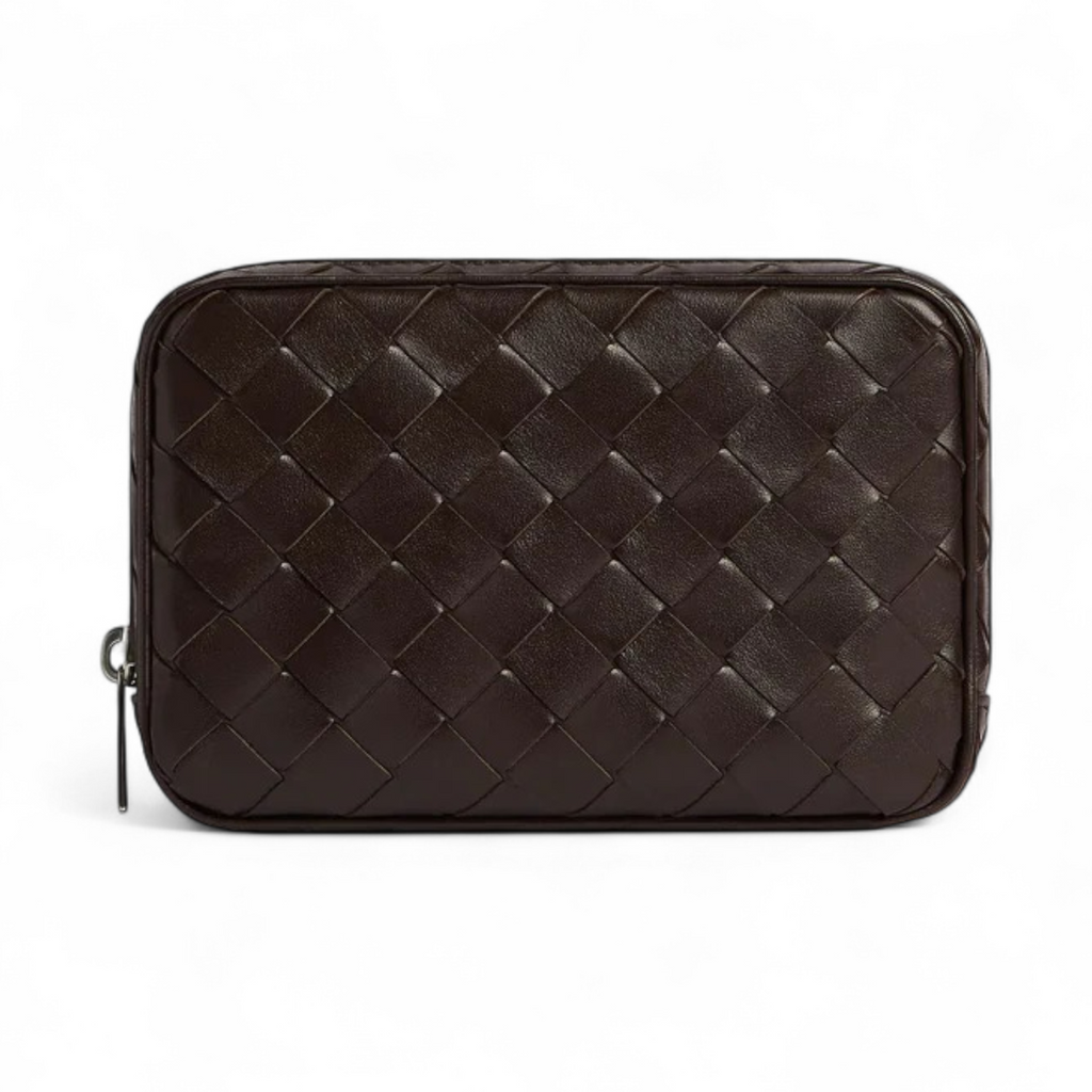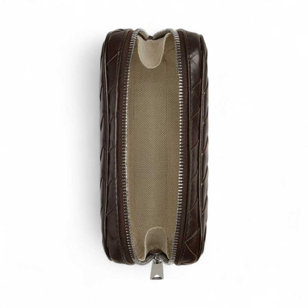 BOTTEGA VENETA INTRECCIATO SMALL FONDANT DARK BROWN ZIPPED ORGANIZING POUCH