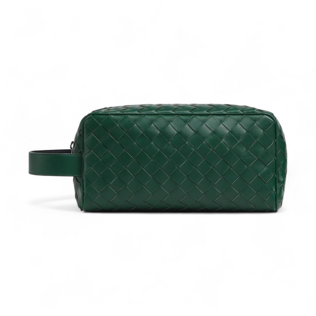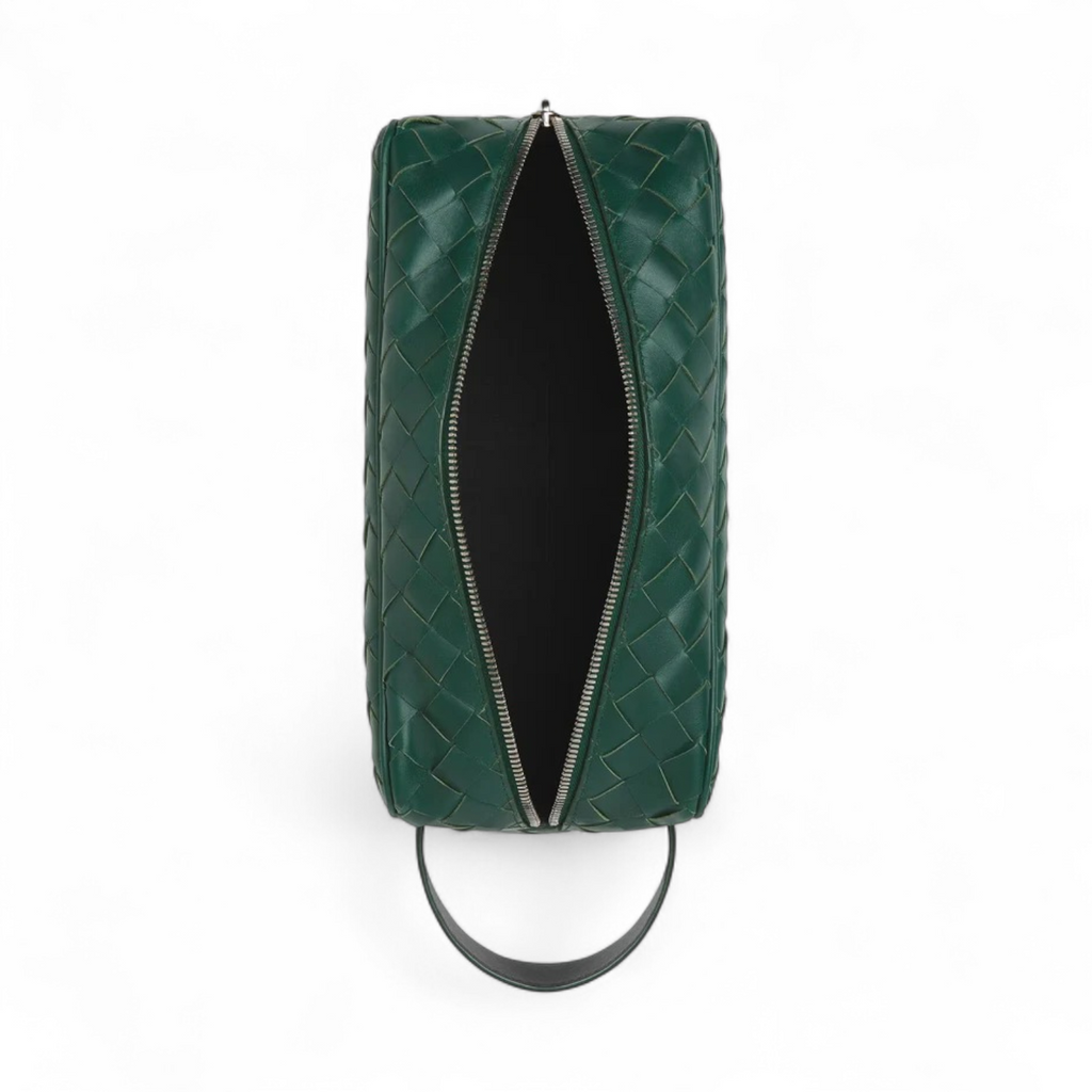 BOTTEGA VENETA INTRECCIATO DARK GREEN TRAVEL POUCH