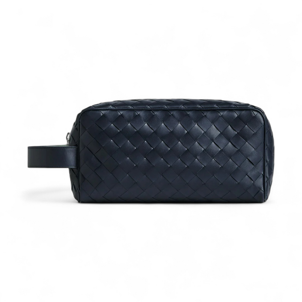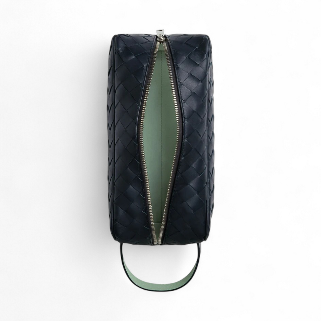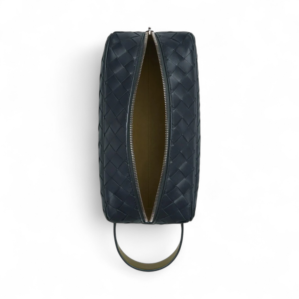 BOTTEGA VENETA INTRECCIATO SPACE DARK BLUE TRAVEL POUCH