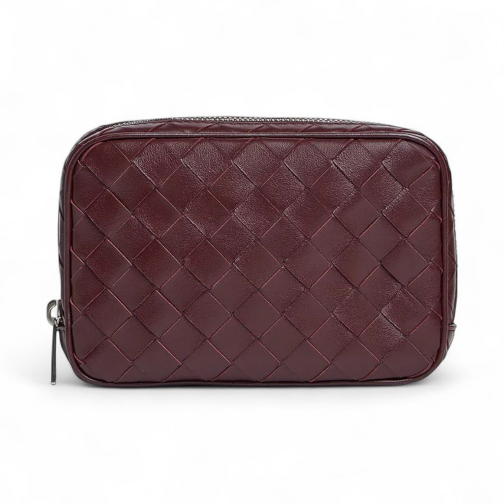 BOTTEGA VENETA INTRECCIATO SMALL MADDER BROWN ZIPPED ORGANIZING POUCH