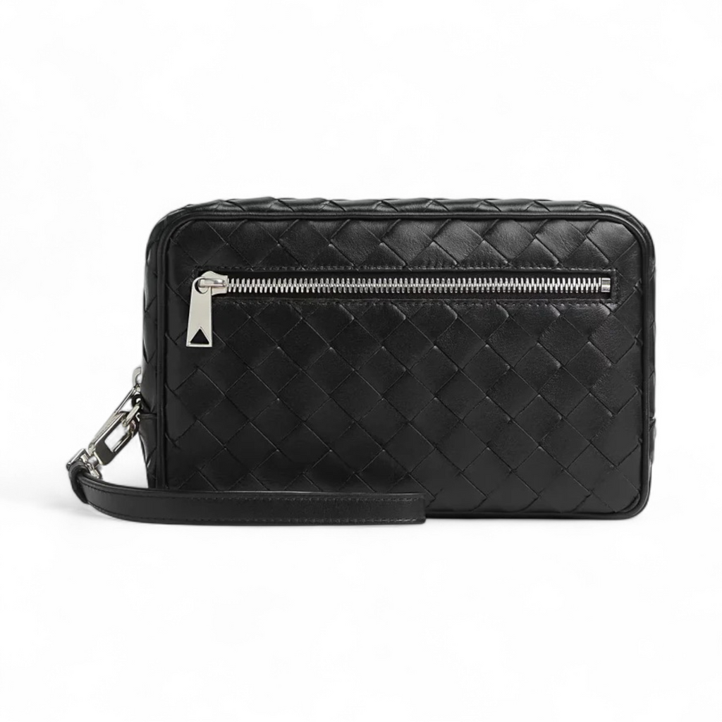 BOTTEGA VENETA INTRECCIATO BLACK SMALL POUCH WITH WRISTLET