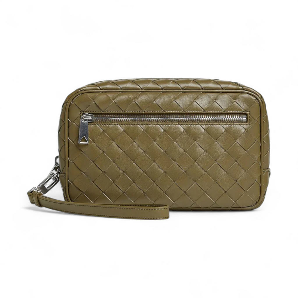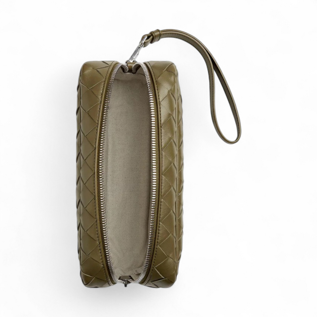 BOTTEGA VENETA INTRECCIATO KHAKI TRAVEL POUCH