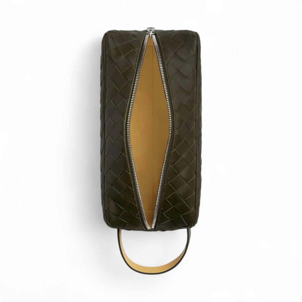 BOTTEGA VENETA INTRECCIATO SHADOW OLIVE OIL TRAVEL POUCH