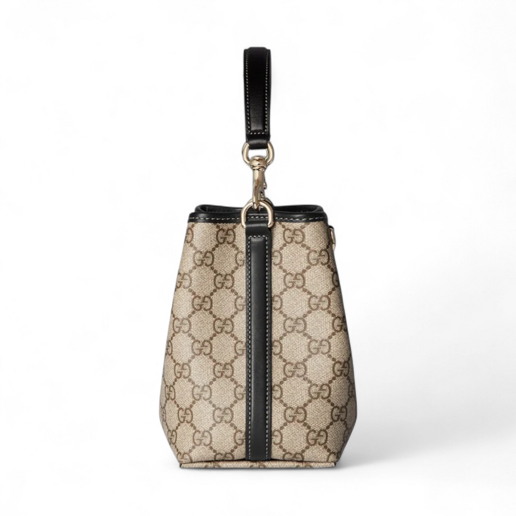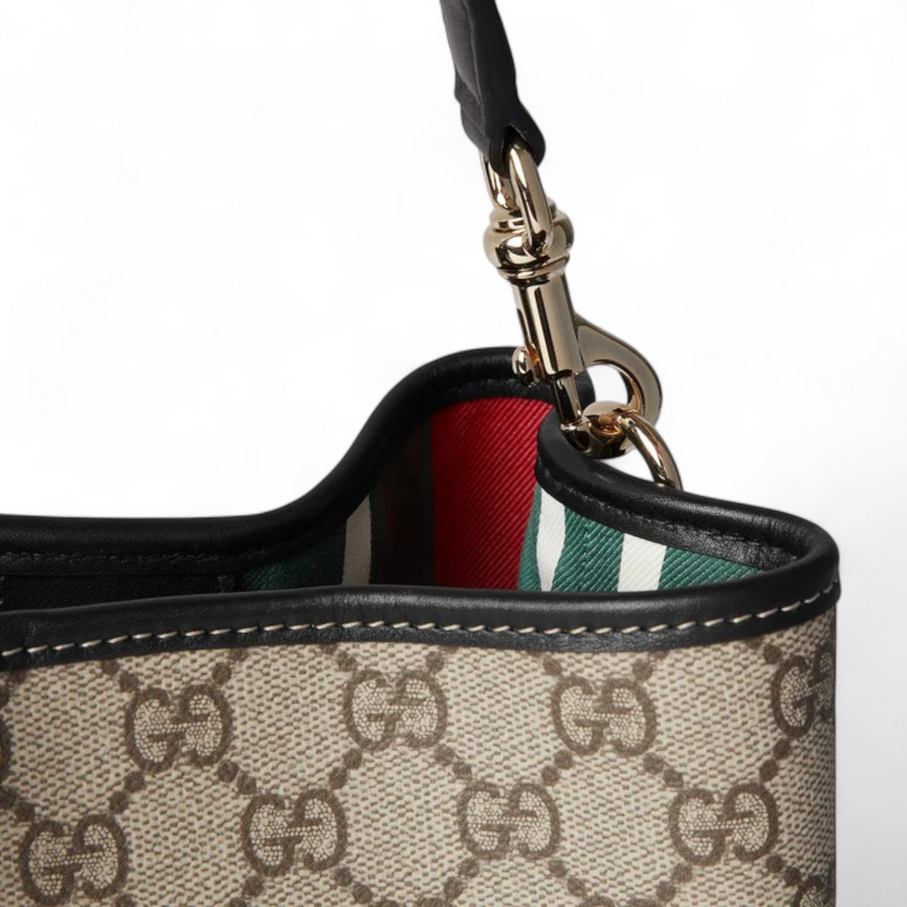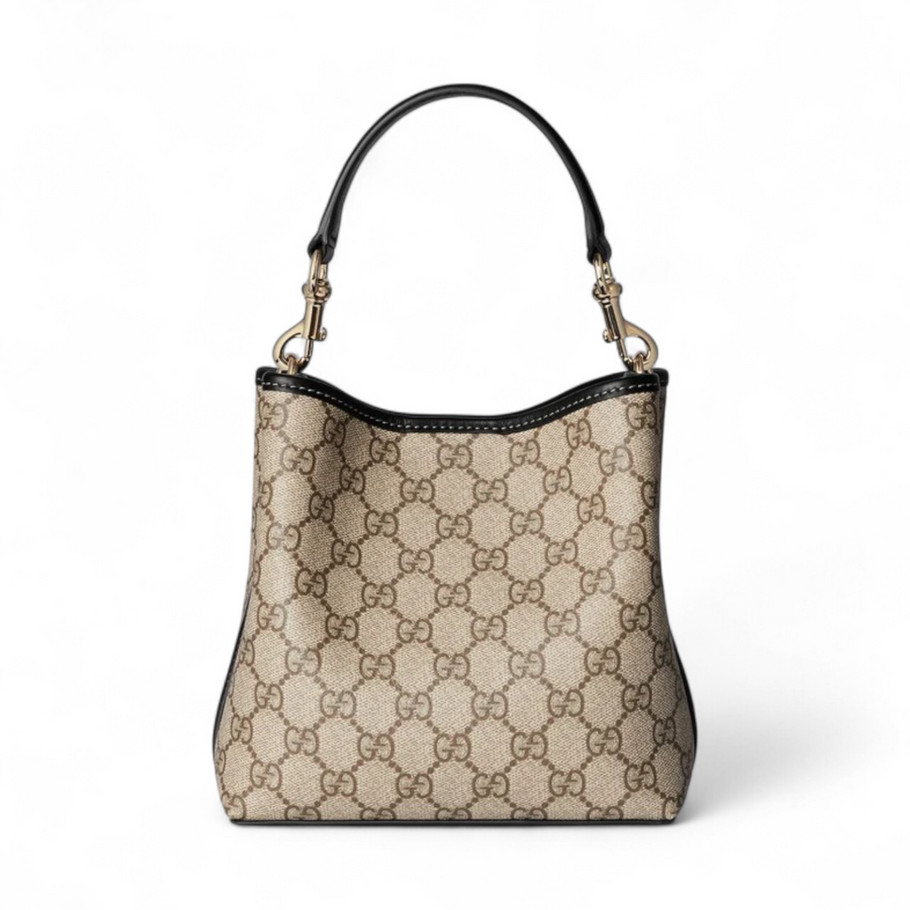 GUCCI GG EMBLEM MINI BUCKET BLACK BAG