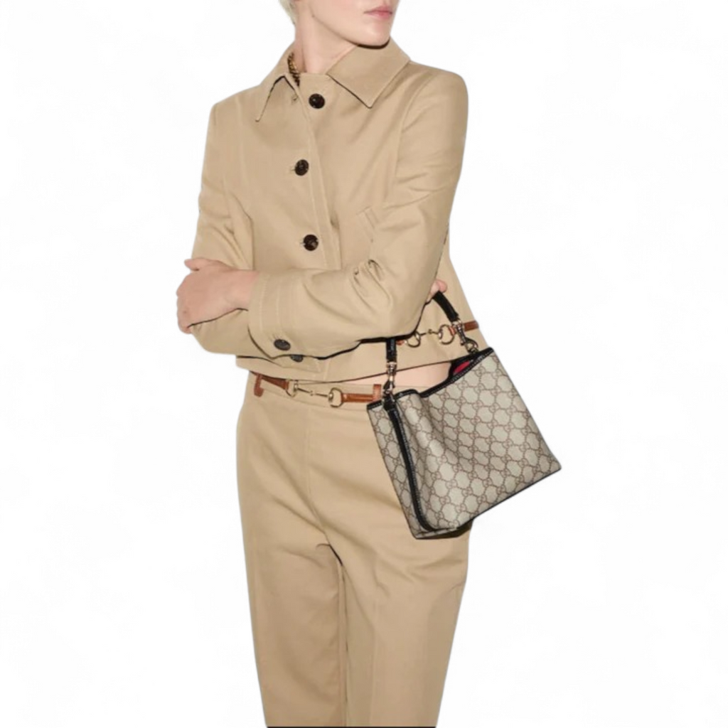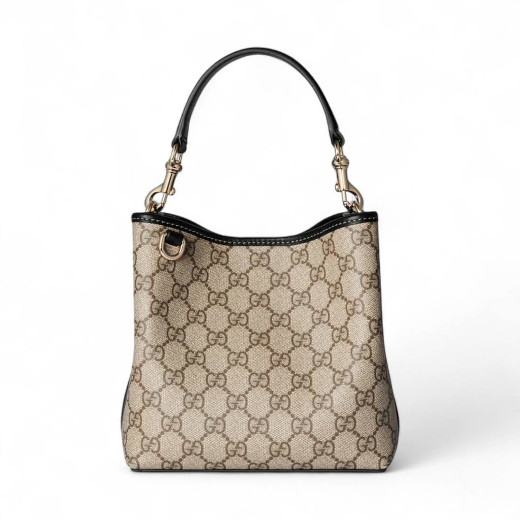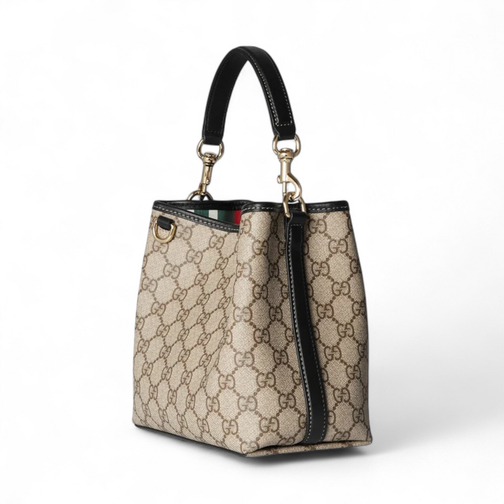 GUCCI GG EMBLEM MINI BUCKET BLACK BAG