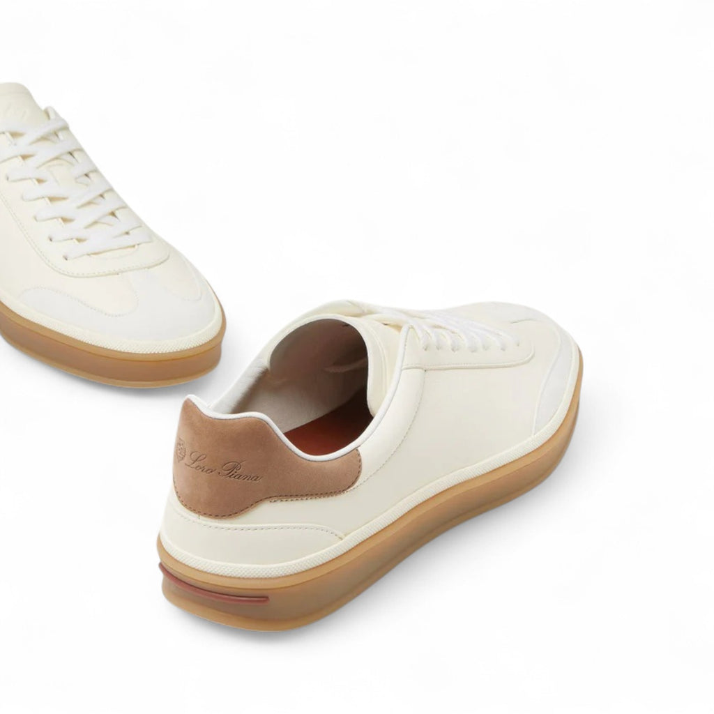 LORO PIANA TENNIS WALK CALFSKIN SUEDE CALF SPLIT WHITE MEN SNEAKER - This item's Size Will Be Shipped Within 15-30 Days.
