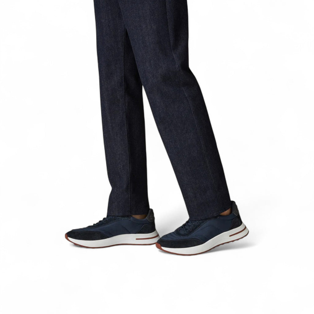 LORO PIANA WEEK END WALK CALFSKIN MICROFIBRE NAVY BLUE MEN SNEAKER - This item's Size Will Be Shipped Within 15-30 Days.