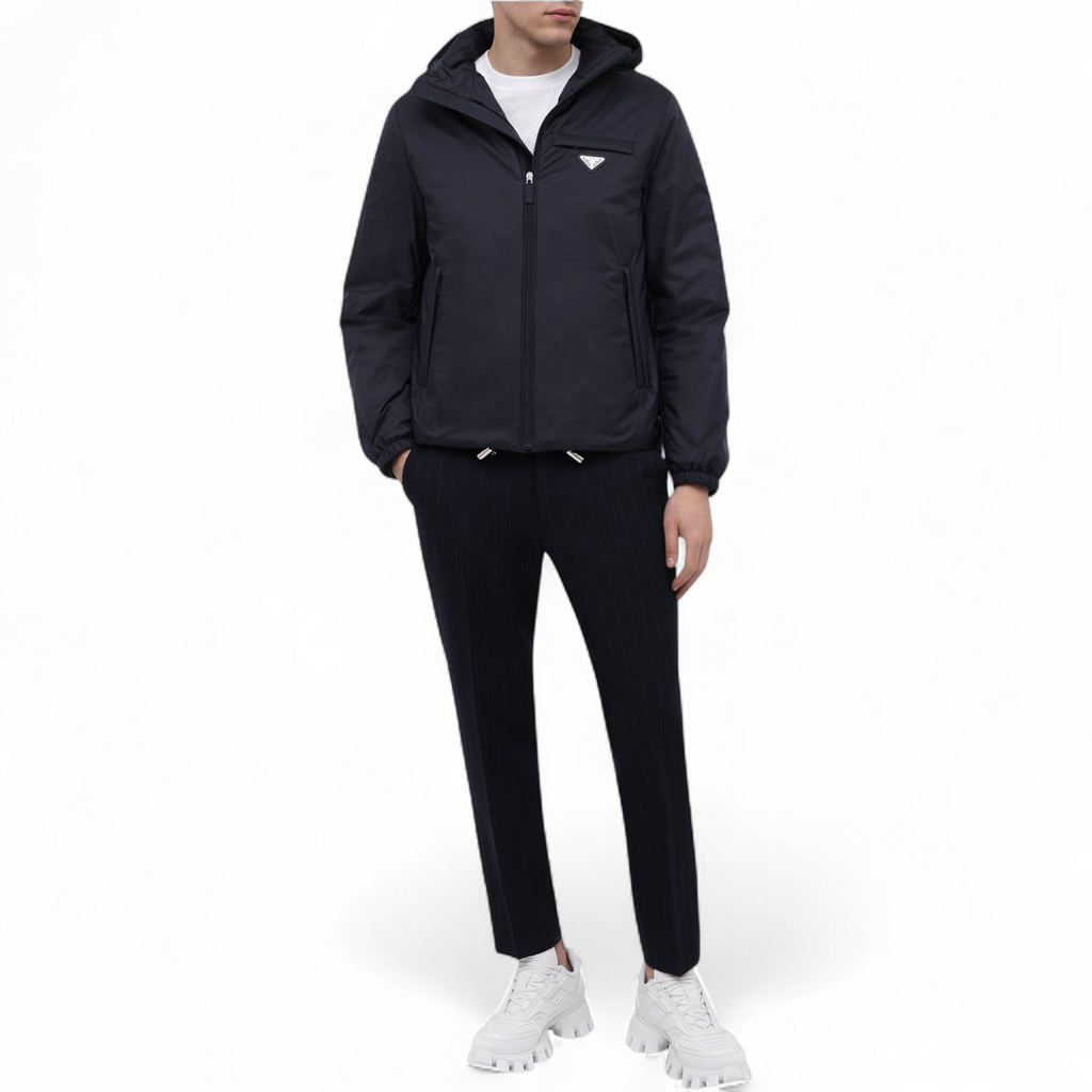 PRADA RE-NYLON PUFFER MEN NAVY BLUE JACKET