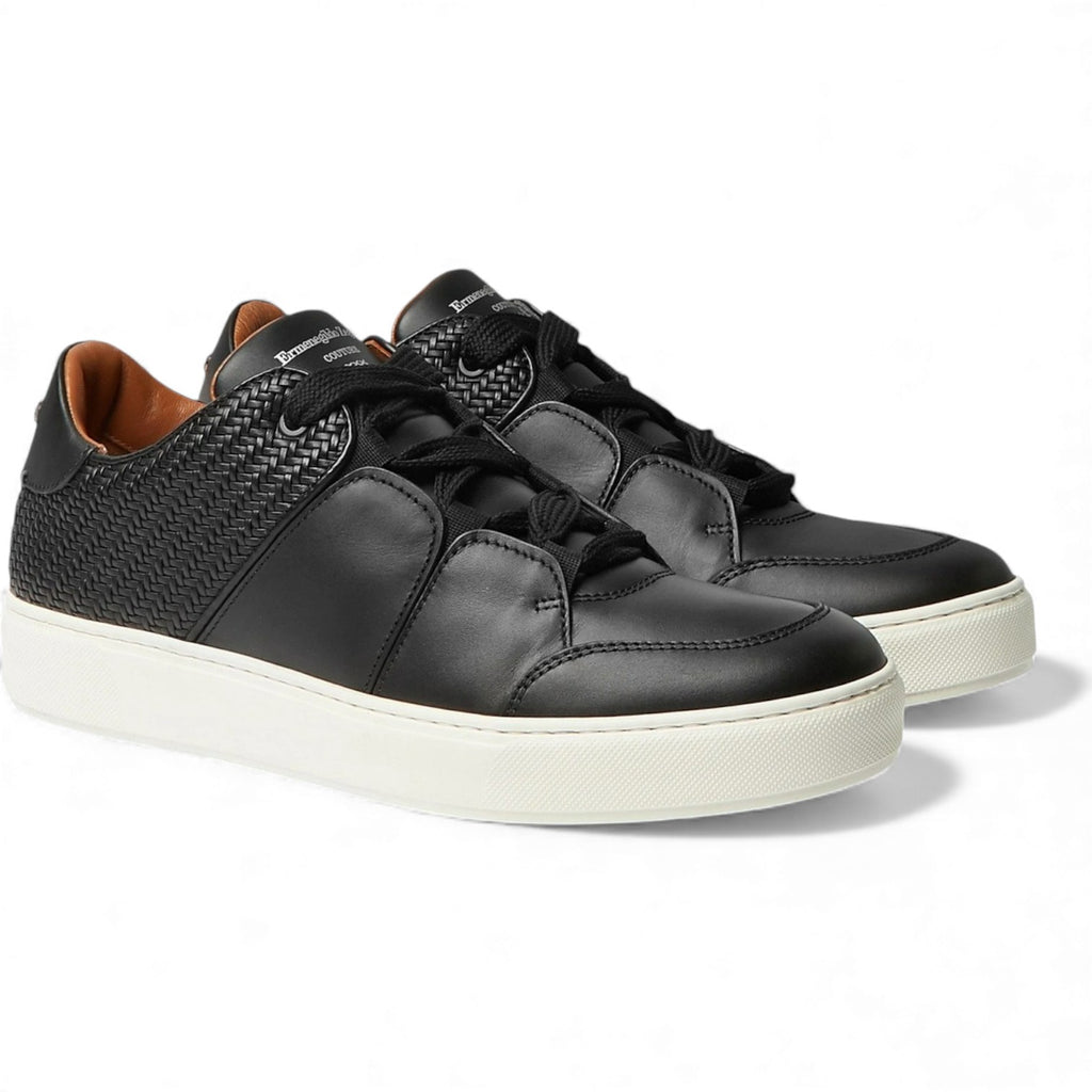 ERMENEGILDO ZEGNA PANELLED BLACK LEATHER SNEAKER