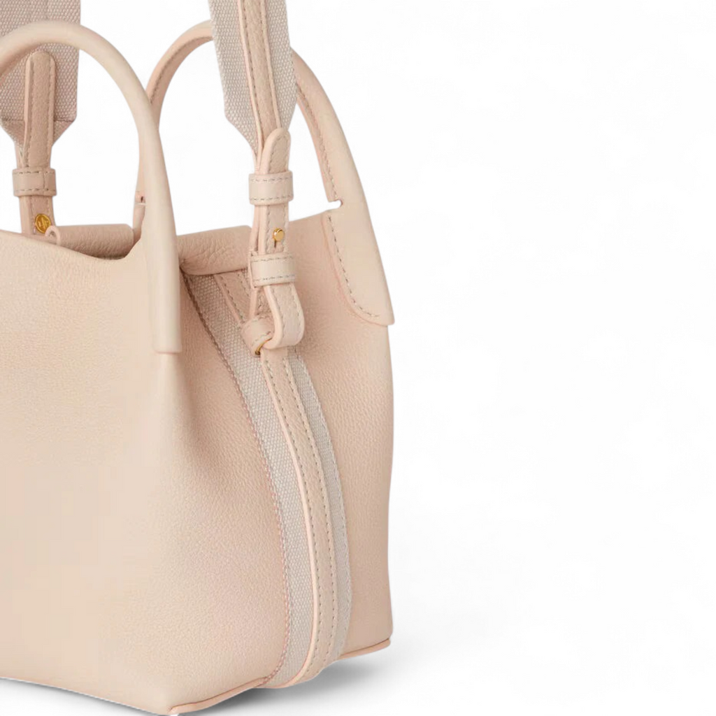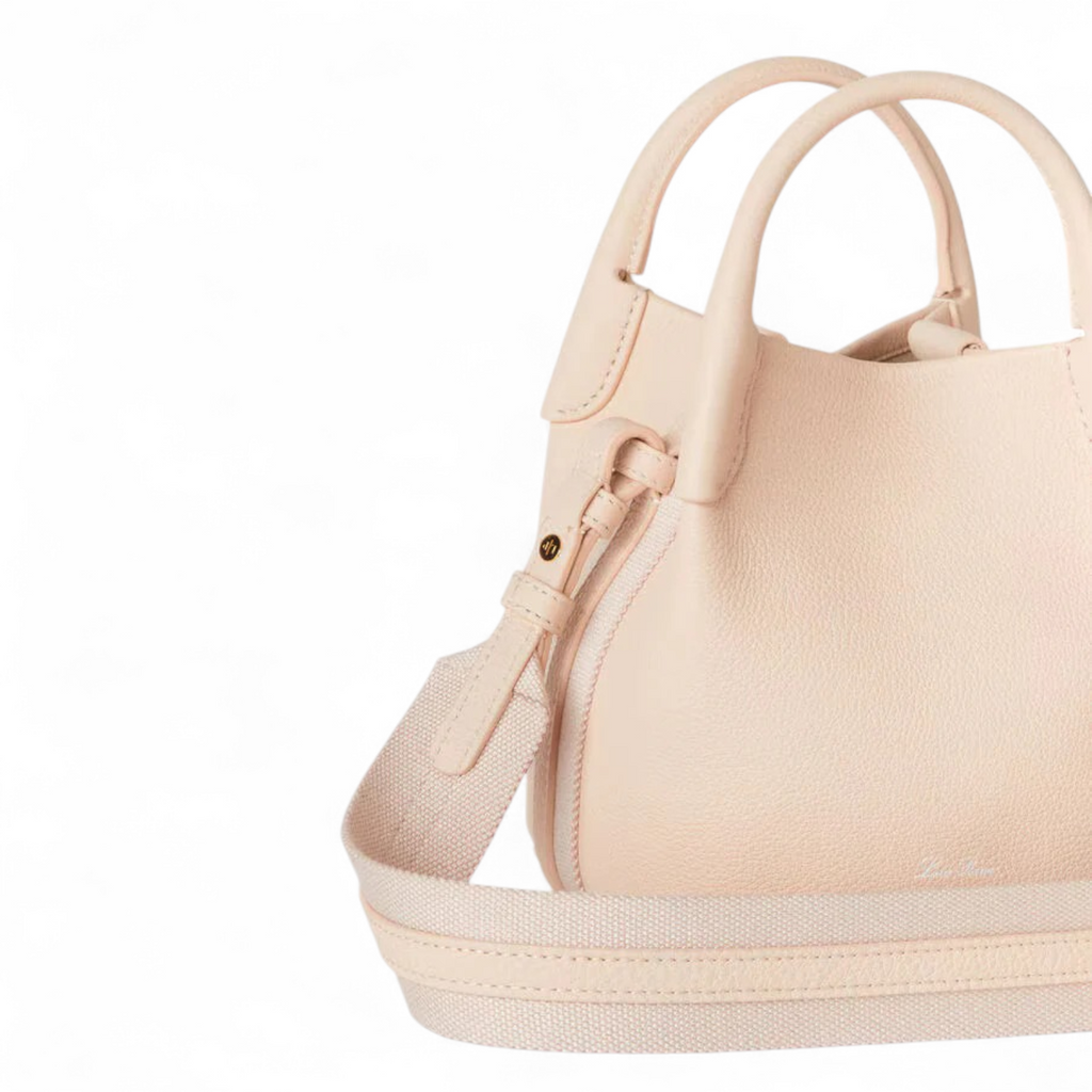 A detachable, cotton-and-leather shoulder strap wraps around the entire bag like a ring