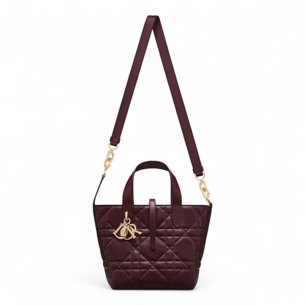 DIOR SMALL TOUJOURS VERTICAL TOTE WITH SHOULDER STRAP BURGUNDY BAG