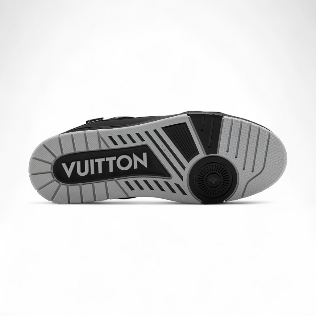 Part of the LV Ski capsule, this waterproof version of the LV Trainer sneaker comes in a mix of technical materials. Inspired by vintage basketball sneakers, this elaborately constructed model takes up to four hours to make. The upper is complemented by rubber LV Initials and Vuitton signatures.