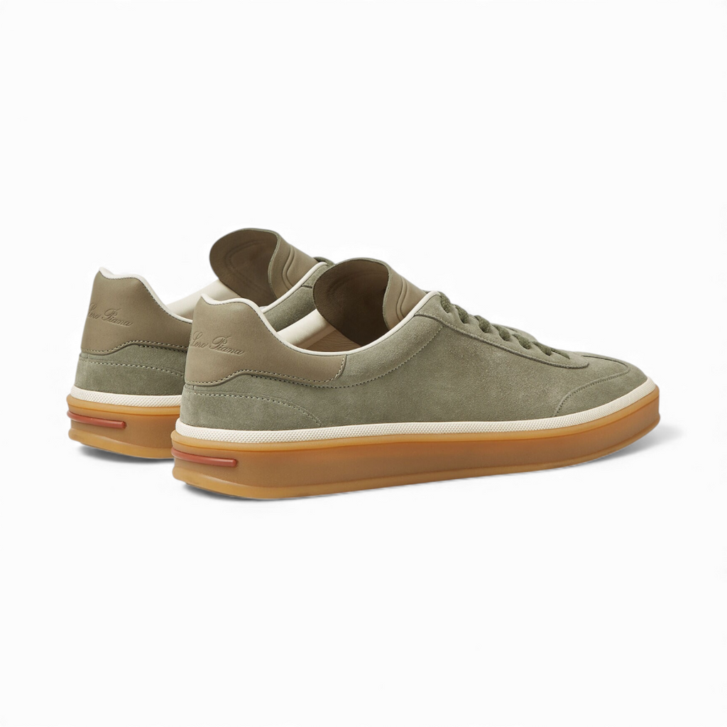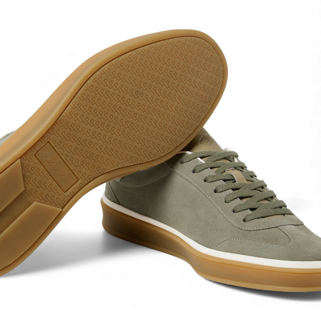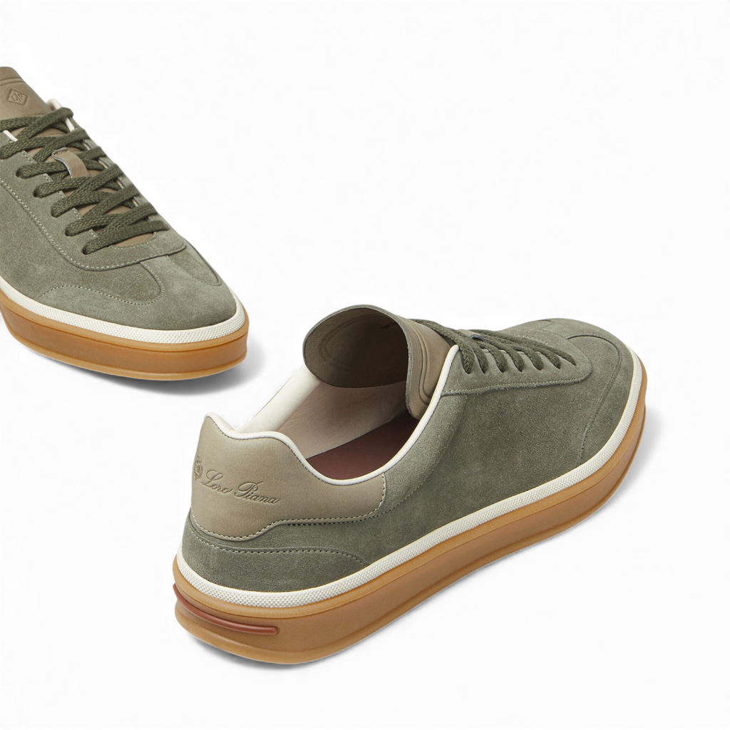 LORO PIANA TENNIS WALK CALFSKIN SUEDE CALF SPLIT MEN ARMY GREY SNEAKER